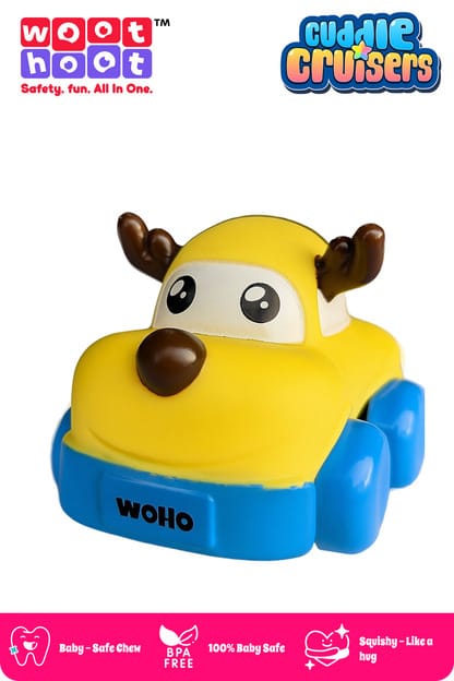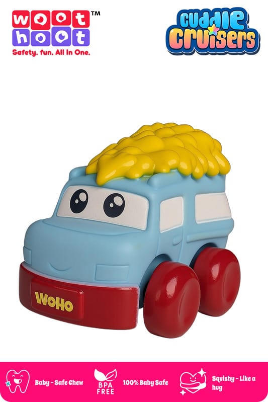 Meet the WootHoot Cuddle Cruiser — the first of its kind in India, a soft baby car toy and the new favourite toy ride of your little one! This pack of 3 cute cars comes in food grade, BPA free PVC — soft enough to squeeze, safe enough to chew and cute enough to be an instant favourite. Available at Mama’s Care, BIS certified and designed for babies aged 6 months and above. Made with love in India.